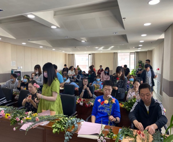 活動(dòng)現(xiàn)場(chǎng),黨委辦公室為廣大黨員提供了手工插花區(qū)域。邀請(qǐng)資深花藝師為與會(huì)黨員同志講解插花的基本知識(shí)和要領(lǐng),大家躍躍欲試,挑選六枝康乃馨、兩支弗朗,配上小雛菊,包裝成心愛的樣子,親手制作花束獻(xiàn)給最敬愛的母親。整個(gè)活動(dòng)現(xiàn)場(chǎng)氣氛溫馨活躍,讓在場(chǎng)的母親和準(zhǔn)母親也感受到了這個(gè)節(jié)日賦予的深刻意義。